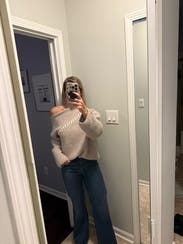 Love this one! The off the shoulder cut is so flattering and it’s versatile to dress up or down. Lots of compliments!