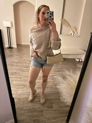 It was a cute sweater, but I had to really edit my bra to make the exposed shoulder work and then had to continuously pull the sweater down so it would stay correctly.