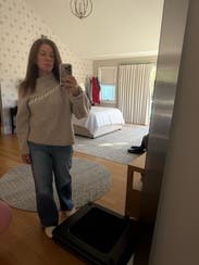 I found the sweater to be cute on the model and the hanger, but when I wore it, it felt wide, short, and the shoulder droop was awkward and didn’t look right.