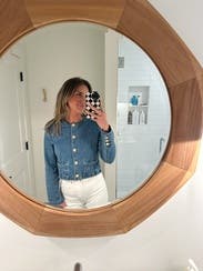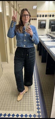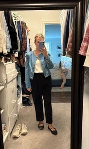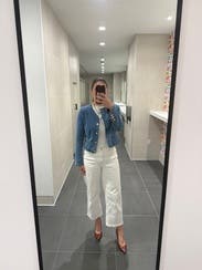 I couldn’t believe how much I loved these more structured Jean jacket. Wore to work, to dinner both casually and elevated. So many compliments. Will probably buy!