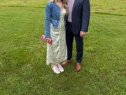 Polished and fun denim jacket. The gold buttons and slightly structured shoulder dress it up a bit from your basic casual jean jacket. Was glad to receive it brand new with tags on when I rented it.