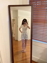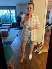 These shorts were fine (totally safe to size down). I wore them with the matching blazer, which elevated them for sure. Great length and cute enough.