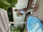 I found that they were too big around the waist despite cinching the belt at the back to the tightest loop. They are shinier than I expected with an overlay polka dot pattern on top of the floral.