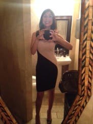 This dress made me feel totally comfortable in such a beautiful restaurant. The fit is true to size and the fabric had a "hold you in" spanx-like quality. I felt like Gloria on Modern Family with all the curves it accentuated. Tip: plan your undergarment carefully! It will show everything.