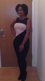 I don't have that pretty hourglass figure, but this dress totally made me feel curvy!! A little fitted, but the black part kind of hides your tummy!! I loved this dress!