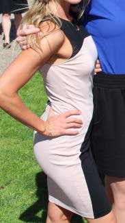 Super sexy dress, perfectly fitted and flattering for a lady with curves. If you love your hour glass figure, this is definitely the dress for you. I loved the mesh top as well. All night I felt super confident in my look!