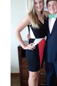 The dress is extremely comfortable and fits perfectly. The color blocking was flawless and the red was just enough to make the dress pop. I was able to move around and not worry at all. A must have and will be using it for future events!