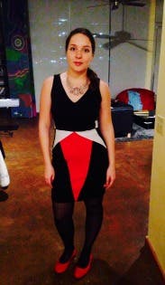 The fit was perfect and I loved the Harlequin-inspired design. The colorblocking is very figure-flattering and I felt great wearing it.