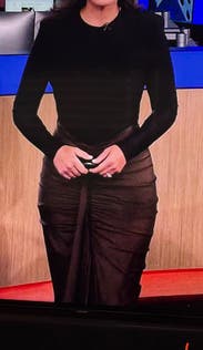 Received a lot of compliments. Rouching is flattering to the midsection. I thought the material would be heavy, but it wasn't too bad. Would rent again.