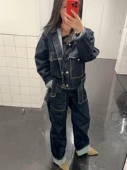 These jeans are the best little dark wash moment! The fabric is super comfortable, making it easy to wear all day. I especially appreciate the thoughtful details like the button fly and the neatly stitched cuff, which add a touch of sophistication. While I did have to cuff them again due to my shorter height (I'm 5'2"), I imagine they would be absolutely perfect on someone slightly taller. The versatility of this piece is also a huge plus; it looks great on its own, but it's even more stunning when paired with the matching jacket for a complete and polished look. Highly recommend!