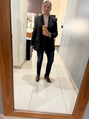 Holy moly did I love this one. It was a good reminder to me not to sleep on older rentals on RTR. This blazer was perfection in fit and color, and I could dress it up or down. It's nicely lined and quite warm. I considered buying it and I probably will if RTR has a big sale. TTS