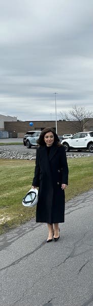 Wore it with jeans, loafers, and gazelles to the dinner, movies and walking the dog, and also with a gown to a formal event. This jacket is heavy, warm, and feels like wearing a blanket. Satiny smooth lining. Two deep pockets and one more shallow pocket.