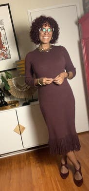 This was a really nice sweater dress, the fringe on bottom and open back makes it more chic. I needed shapewear underneath as it was a bit clingy in the stomach area despite being fairly thick fabric