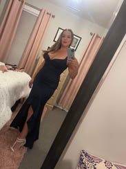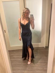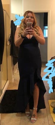 This dress was a little snug around the hips but hugged me just right otherwise. The slit was the perfect length and neckline showed just the right amount of skin. I was very pleased with my choice