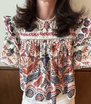 Farm Rio is one of my go to designers. The shirt is styled large and flowy but is cropped. I received many compliments and felt chic and comfortable.