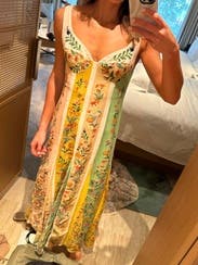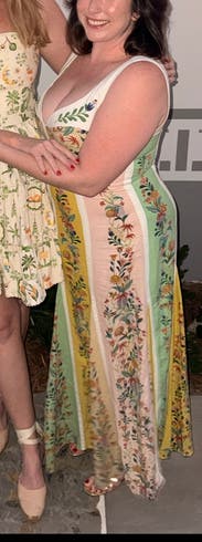 Too big around waist so not the most flattering but it was a hit for a “resort chic” wedding dress code