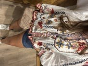 Exceptional Farm Rio blouse that became my rock n roll got to top. Wore to two different concerts and received many compliments. The embroidery is fantastic, particular the cut work on the back. The tie strings are definitely a bit long, but the beading makes it tolerable.