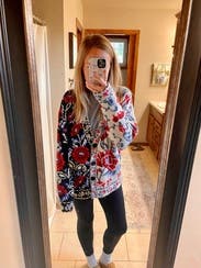Team RTR review! This is a beautiful sweater. Just the right amount of oversized, the two-tone mixed with a classic Farm Rio pattern was so fun. I love a versatile piece so while I wore this for work, would easily wear at home, out to dinner, to grab coffee, etc.