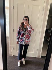 Most stuff from farm rio is oversized and this is no different. But that’s what I love about the brand. Gives your some room, feels casual but looks cute and stylish. This picture looks frumpy but I wore with the wrong pants. Wear with skinnier (not wide legged) pants for a super cute look.