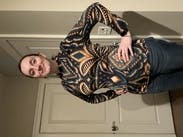 Wore on a chilly summer night. It was definitely loud and really accentuates big boobs but it was lightweight and comfortable so I owned it. sleeves are long but didn’t bother me too much