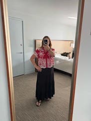 So fun, flirty and fab! Rent both pieces or just the top. Don’t have a photo of complete outfit but it was fun and felt great too. Might buy later on if the set-trend continues. Would love in another color too.