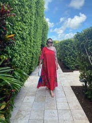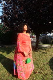 Colorful, comfortable dress. Is slightly see through as described by other reviews. Loads of compliments. Unique style while remaining sophisticated. Would rent again.