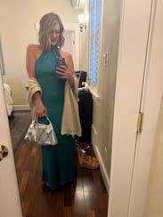 I wore this to a formal wedding and it was a hit!! I got SO many compliments and felt so glam. It was soooo comfortable and flattering and the color is stunning. Paired with RTR earrings & it really completed the look!