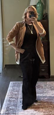 Loved this oversized blazer! So stylish with wide leg blue jeans and a white fitted top or with all black underneath. Wanted to keep this in my closet!