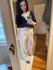 I've been hunting for pants like these for years - I'll never have to look again! So cute, so comfortable to wear all day, and the material is thick without being too hot or sweaty. *Note that you may have to wear a small heel to accommodate the length of these trousers.