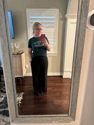 Soft and thinner tee perfect for summer. Love the forest green color. Received new with tags! My first new with tags! It runs a bit bigger/ looser. I’m 120lbs and I rented XS but you can see the extra fabric in the photo I posted. Highly debating keeping it. I can definitely picture me grabbing this to wear multiple times. I’m also a sucker for forest green