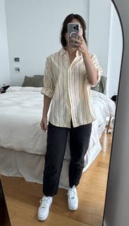 This was a good oversized button-down shirt option, with fun colors for spring. Note that even for an over-sized shirt, the sleeves and shoulders are VERY blousy.