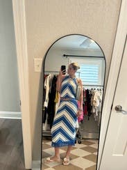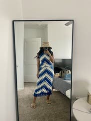 This fit perfectly and looked great with the matching top. It great for vacation in Greece and really matched the aesthetic. The bottom doesn’t have any give so I had to lift it for long distances.