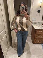This sweater fits great, and it so versatile. It goes perfectly with the leopard-print jeans, also from Rent-the-Runway.