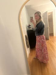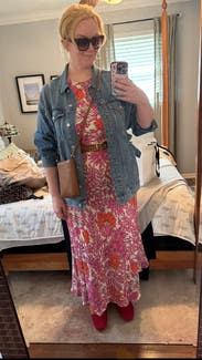 Pretty dress, but it's a bit tight around the armpits. As you can see, I paired it with a cropped, white denim jacket to cover up the "flaw."