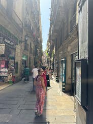Spain is HOT and this was the perfect dress to cruise around and explore in the heat. light weight, comfy and chic! GREAT, bold print! I paired with sneakers but would be cute with a heel for an event too!