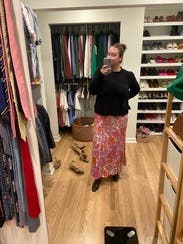 Wore twice because of the cute pattern and easy fabric. That said, the fit is odd - clings to the lower abdomen and bunches at the behind. I enjoyed it with a jacket. Maybe I should have sized up?