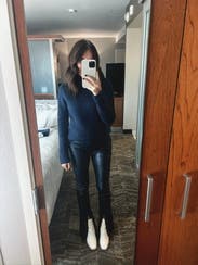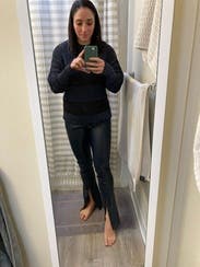 Rented with the sparkly sweater super cute. Pants fit great we’re very comfortable and true to size. Definitely high waisted.
