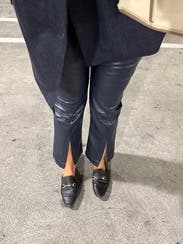 Much as I imagine Sandy from Grease zipped herself into her leather pants at the end of that movie, so too did I in these pants. The have a little stretch in the waist and no real waistband so they can be tight as they sit on your hips. The benefits of these pants is the indigo makes the leather a little less severe so they were easy to dress up or down, the open slit means more shoe options (which you can show off) and no one has to modify their whole personality for a summer fling to look great. Would definitely rent again.