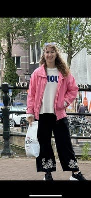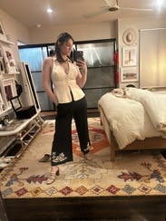 I was a little skeptical, but the outfit looked cute on the model, so I decided to rent both pieces, and I ended up loving it! Wore the set for a few different events and each piece separately several times! The fabric is linen so it does wrinkle easily and much thinner than I thought it would be, which was perfect for the unexpectedly warm spring weather in Europe while I was on holiday.