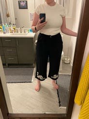 great pants for errands. fabric was a tad itchy but wearable for the day! loved the detailing. the rodeo was in town so wore this for the parade in town.