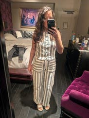 I wore these so many times. I rented the set and wore it for my bachelorette party, and mixed and matched the pants with so many different tops. Will probably rent again.