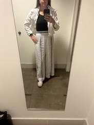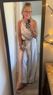 Wore this twice with the matching top and received tons of compliments both times. As a tall girl with wide hips and a very small waist, off-the-rack “tailored” pants are almost never a perfect with for me but these fit like a glove. I always get nervous that white linen will be sheer, but it wasn’t at all. Would purchase if it weren’t the end of the season!