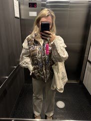 I was excited for this one but it fell a little flat in person, maybe because it was a lot shorter than I expected? I thought since it was oversized it wouldn't be so cropped, but it was pretty short on me. The rest of the sizing besides length was fine. Note that the pattern has cutouts and you'll have to wear a tank underneath