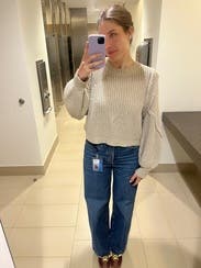 I’m usually a 27 but saw some of the reviews said to size down so I did and it did fit but it was a bit snug in the butt/hips. It was very uncomfortable at times to sit in these jeans but I pushed through it because I loved the wide leg and wash. The waist was also a little big which is my usual problem so idk if I’d try to rent these again in a 27. They were a fun rental though, I wore them a lot!