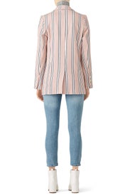Classic stripes and a longline fit give a nod to menswear styling on this double-breasted blazer by Free People.
