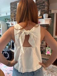 Great white top with an open back. I wore both times with jeans and with shorts. Loved this top