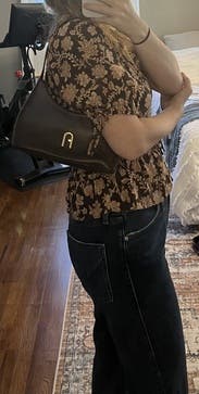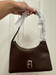 So cute and perfect size. Love the brown color and the leather material. The furla logo isn’t obnoxious.
