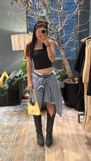 Rented this for a specific outfit and found that actually was a perfect accent to quite a few of my OOTDs! Very pretty yellow, perfect for adding some color to neutral fits or complimenting any patterns. Leather was soft, not stiff, but held its shape and could stand up on its own. Fit my iPhone Max, 2 lips glosses and a small brush! Had zippered and regular pocket for cash, ID and credit card. Very much enjoyed the 10 days I spent renting it :)