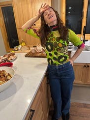 A shirt this chaotic goes with any and everything. So much fun styling this. I also have so much appreciation for a turtleneck opening that doesn’t require the jaws of life to get in and out of.