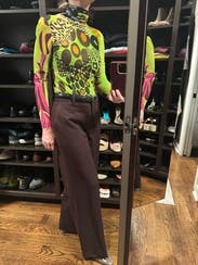 My first but not last Fuzzi rental. The colors on this are just so interesting. I played up the pink with a pink pointed pump. I felt super stylish! The top is lightweight and comfortable, easy to tuck in as it’s very thin.